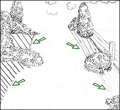 • Ha csak néhány nagyobb sziklát szeretnénk elhelyezni a kertben, akkor alakítsunk ki egy sziklacsoportot, helyezzük azt a kert valamely gyakran látogatott pontjára (pl. egy út mellé). A sziklákat süllyesszük a talajba eredeti (talált) helyzetükben, mintha azok kiálló szórványkövek lennének, ne állítsuk talpra őket, mint valami kerti törpét. A kövek környékét ültessük be olyan alacsonyabb évelő növényekkel, amelyek nem igényelnek különösen jó vízáteresztő képességű talajt.